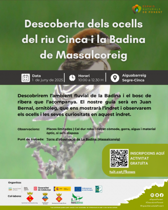 Descobrirem l'ambient fluvial de la Badina i el bosc de ribera que l'acompanya. El nostre guia serà en Juan Bernal, ornitòleg, que ens mostrarà l'indret i observarem els ocells i les seves curiositats en aquest indret.